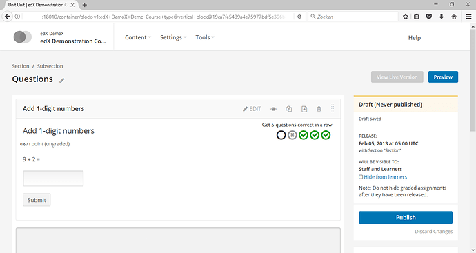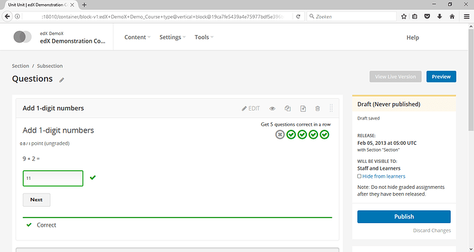 I have recently discussed the development of a new kind of XBlock with @Mattijs_Joosten. The general idea is to create an XBlock which presents questions to a student until a streak of N (typically N=5) questions have been answered correctly. The correct answer count is reset to 0 at every mistake.